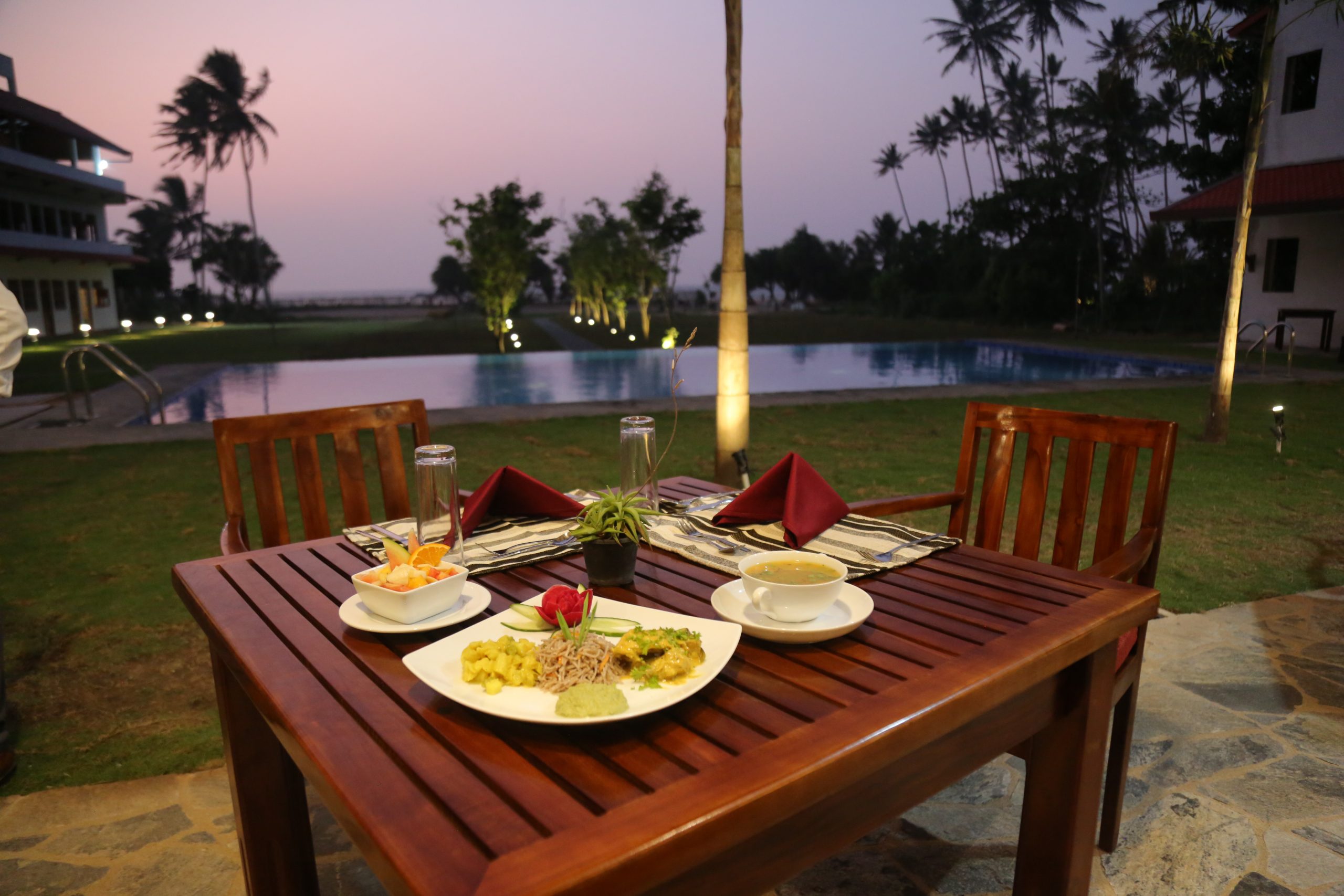 Im Erdgeschoß befinden sich Rezeption, Lobby und das Restaurant, das zum Teil im Innenbereich und zum Teil im Außenbereich angeordnet ist. Hier werden den Gästen dosha-gerechtete Mahlzeiten gereicht. Die Zutaten kommen frisch von den umliegenden Erzeugern und werden schonend und schmackhaft von den Köchen zubereitet. Auf etwaige Nahrungsmittelunverträglichkeiten kann selbstverständlich Rücksicht genommen werden.