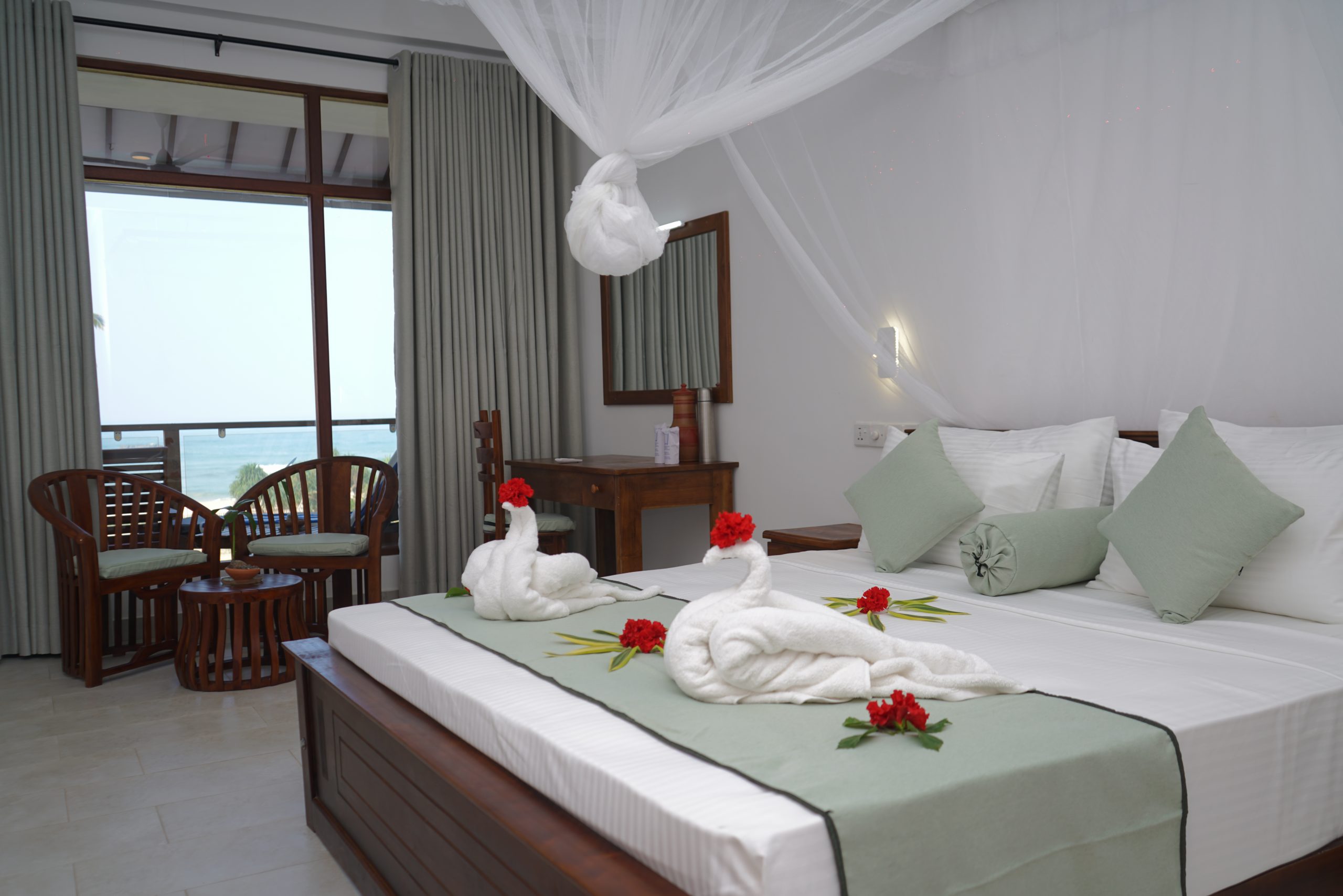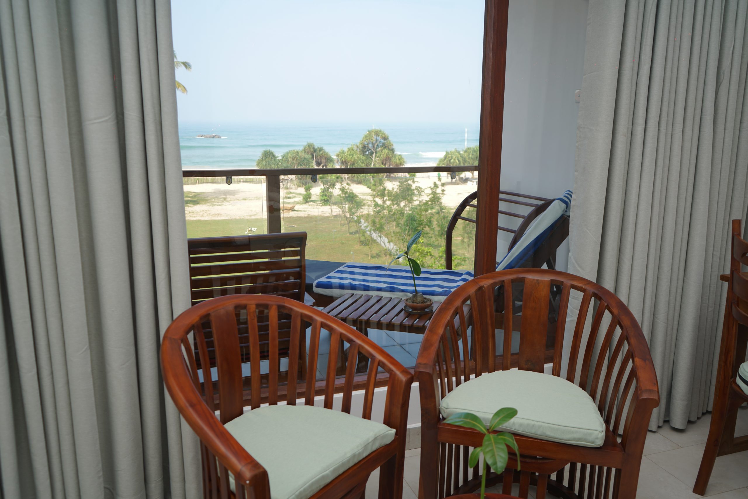 Die insgesamt 30 Zimmer verteilen sich auf drei Etagen und sind über einen Aufzug erreichbar. Alle verfügen über große Panoramafenster und Balkon für einen fantastischen Blick über die langgezogene Balapitiya Bucht und das Meer.